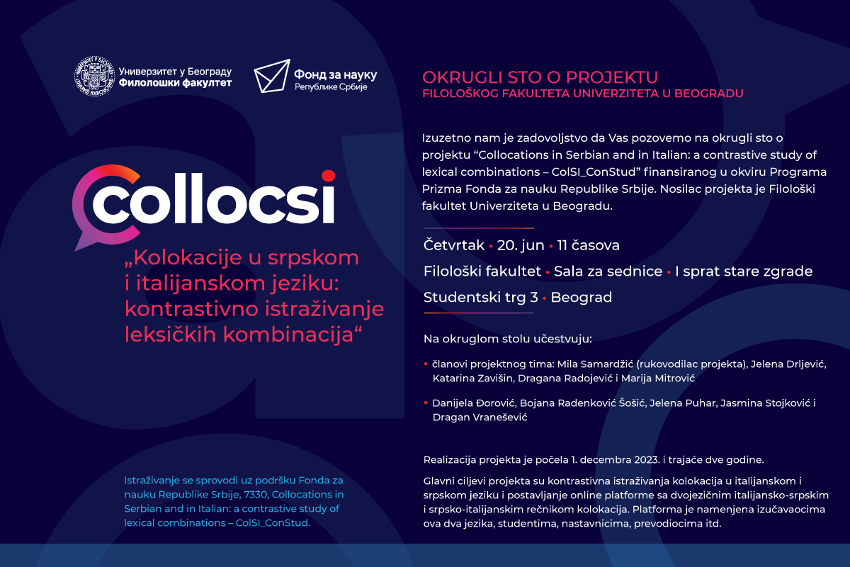 Okrugli sto o projektu Fonda za nauku "Kolokacije u srpskom i italijanskom jeziku: kontrastivno istraživanje leksičkih kombinacija"